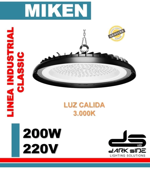 LÁMPARA LED GALPONERA COLGANTE 200W MIKEN ALTA POTENCIA, LUZ CALIDA, DS-BAY LIGHT-DOB-200W